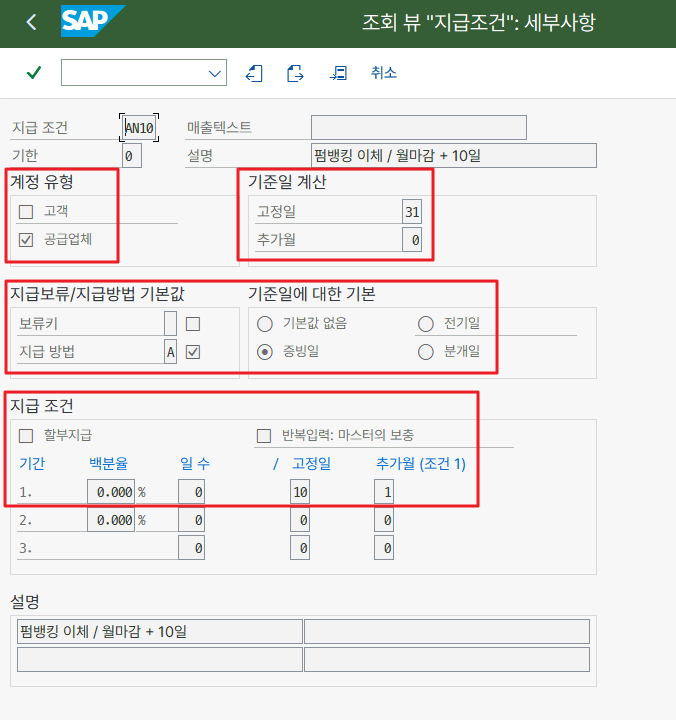 T-CODE : OBB8에서 지급조건에 대한 IMG Configuration Setting을 함.